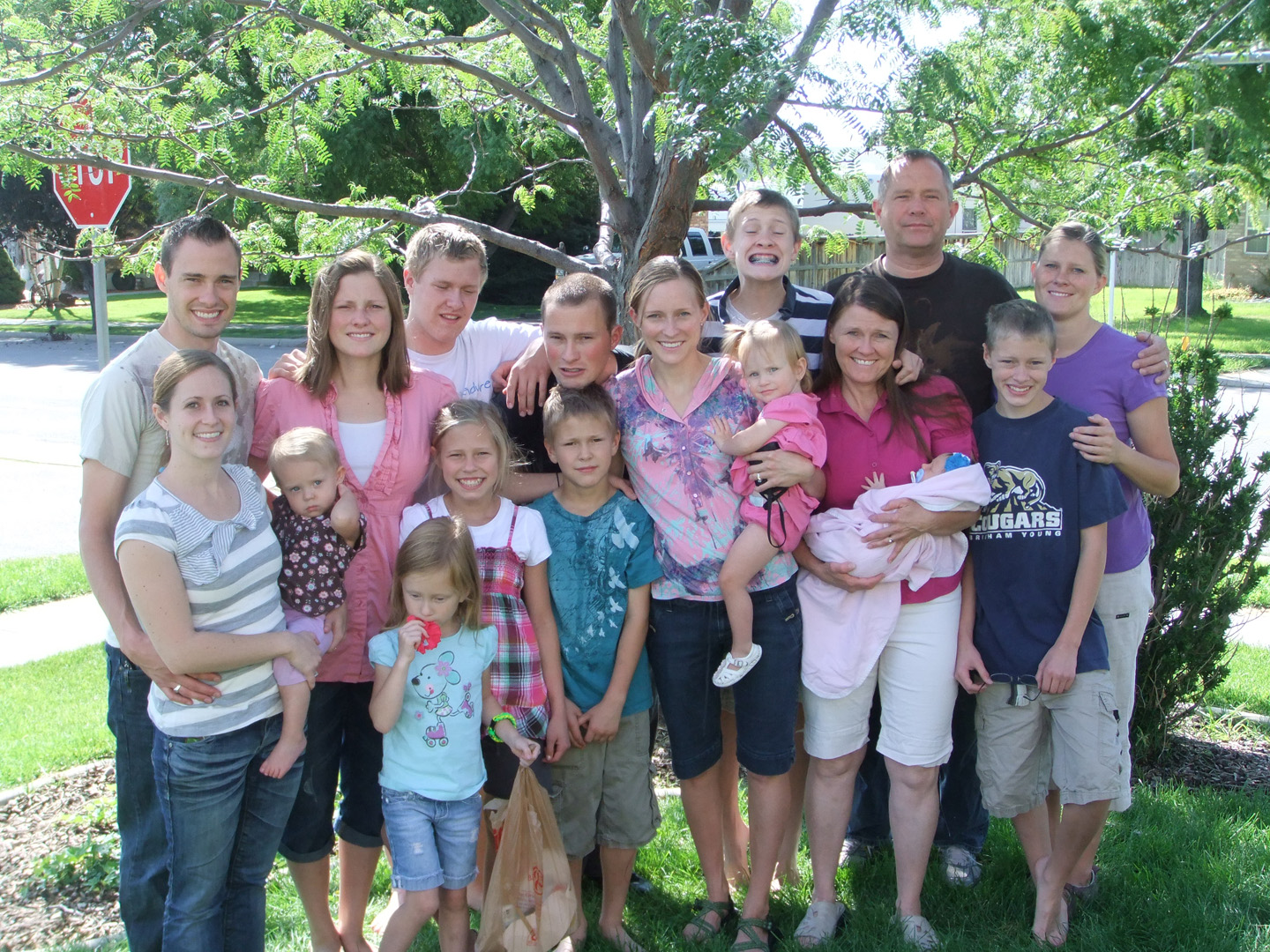 That night my parents had all ten of their children under the same roof! Add to that 2 children in law, 6 grandchildren, and 2 cousins and we had a full house! The only person missing was Kirk.Here's a picture of most of us (Blake, Nathan, Maelie, and Kirk missing)